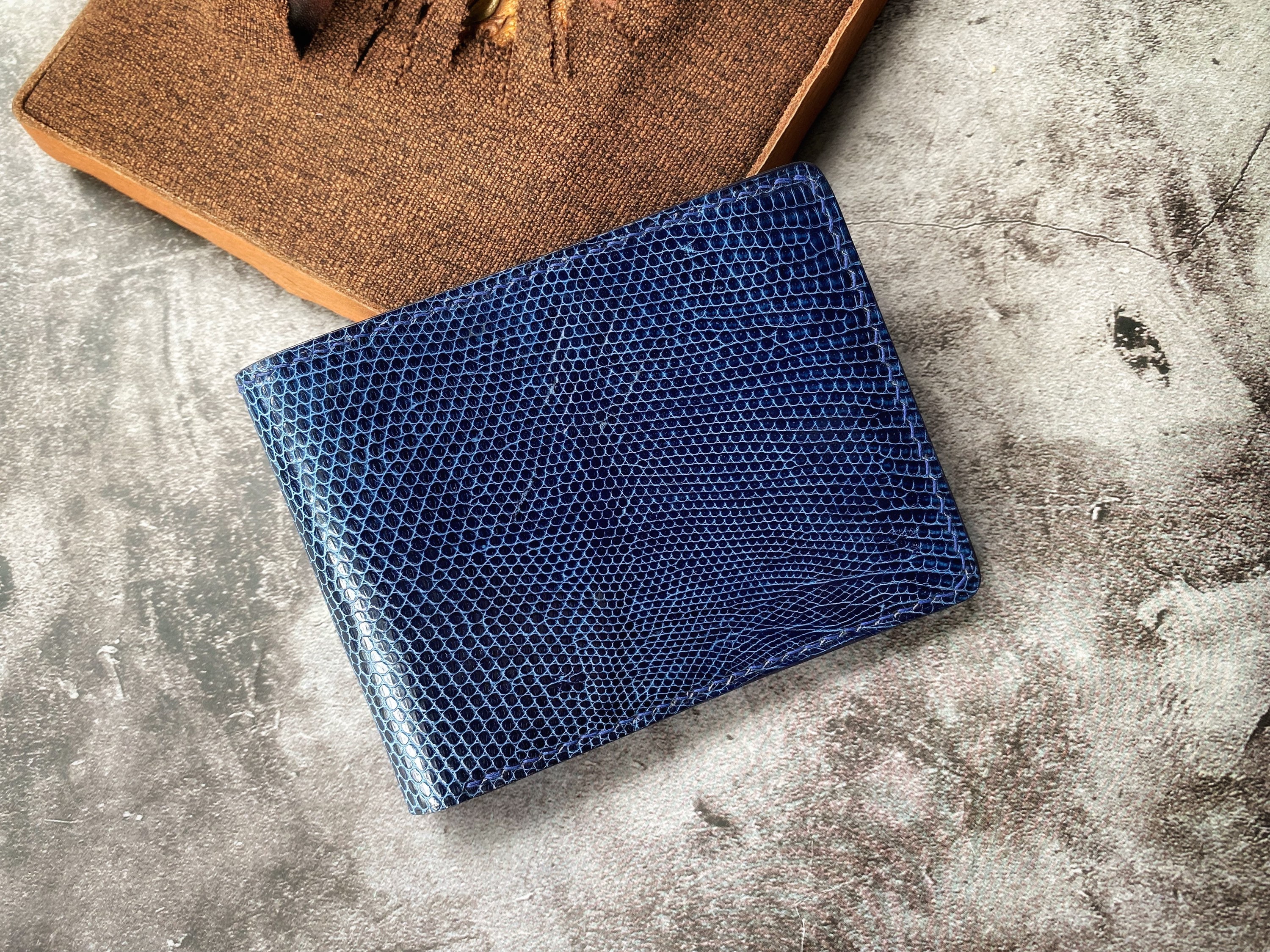 Handmade bifold wallet is made of genuine Lizard leather, featuring with cowhide leather. This combination makes the wallet look unique, soft to touch and flexible to put in your front pocket.